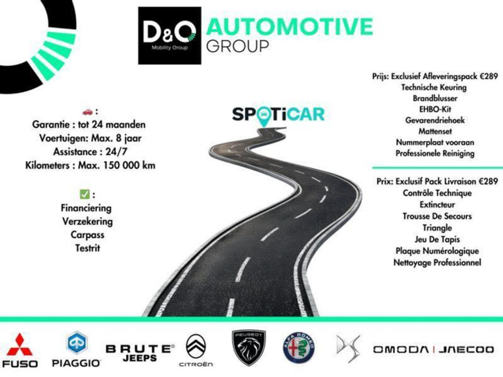 Cela comprend le contrôle technique, l'extincteur, la trousse de secours, le triangle de signalisation, le nouveau jeu de tapis, la plaque d'immatriculation avant et un nettoyage professionnel avant la livraison.